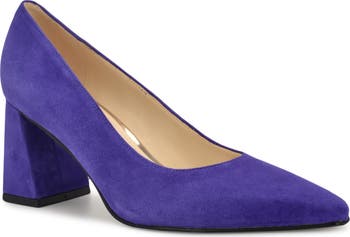 An of-the-moment snip toe furthers the streamlined profile of a faux-suede pump set on a flared block heel for stylish and walkable height.