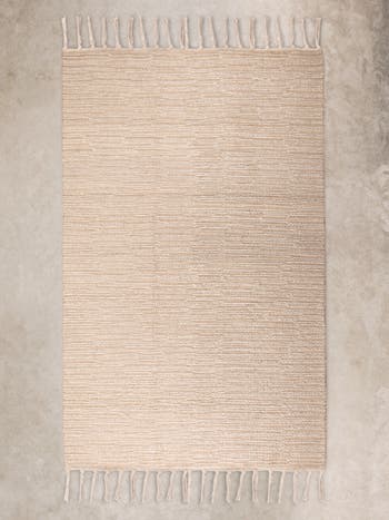 The Nirvana Area Rug embodies the exclusivity of handcrafted luxury, showcasing a meticulously woven texture that reflects the artisan's exceptional skill in transforming simple materials into a sophisticated masterpiece. Sustainably sourced from India, each multicolored rug features intricately finished fringe details, enhancing its unique character and charm. Perfect for elevating any room, this exquisite creation adds a touch of artistic finesse to your decor. Owning the Nirvana Area Rug means embracing a world of artisanal excellence, turning your living space into a vibrant tapestry of style and elegance.