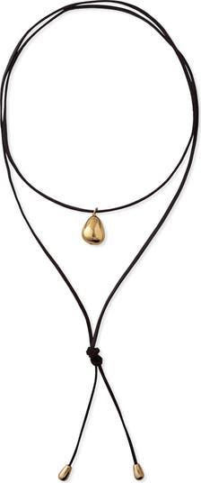 Boho meets bolo in this leather wrap necklace glinting with polished 18-karat gold-plated accents.
