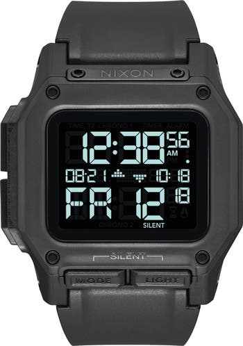 A fiber-reinforced case adds extra durability to this rugged yet refined digital watch.