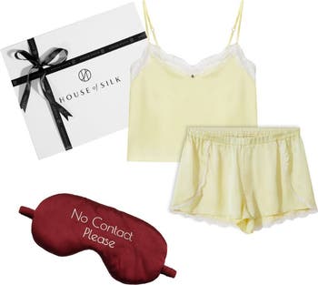 Unplug after a long day and enjoy the comfort of going offline. The Golden Set – Yellow pairs effortless style with everyday ease, while the No Contact Please Silk Eye Mask – Burgundy adds a refined touch to your wind-down routine. Set Includes: Golden Set – Yellow. No Contact Please Silk Eye Mask – Burgundy. Perfect for: evening decompression, offline moments, elevated lounging, and thoughtful gifting with a modern attitude.