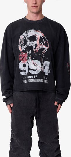 Dropped shoulder seams emphasize the slouchy, relaxed fit of a T-shirt made of soft cotton with skull-and-rose artwork ensuring you're never out of topics for starting a conversation. Mottled coloring reinforces the old-favorite look and the worn-it-forever vibe.