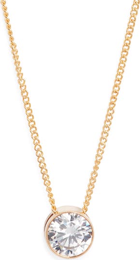 A bezel-set cubic zirconia shines at center stage on this 14-karat gold fill necklace.