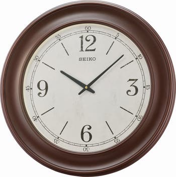 The Seiko Noa is an oversized large 22" classic wall-mounted clock features an oversized round frame. The vintage design fits perfectly in with any home decor. The large Arabic numbers are easy to read from any angle. Powered by 1 A battery (included). Overall dimensions: 22.44 X 22.44 X 1.85 inches. Quartz crystal movement allows for the most accurate time keeping. Perfect for the kitchen, family room or any living space.