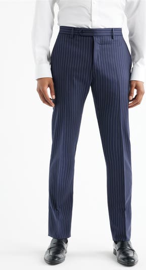 Italian-made dress pants are expertly tailored in a blend enriched in wool and cotton and patterned in pinstripes that call out the slim silhouette.