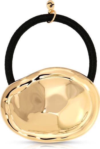 Don't leave your tresses out of the accessory game: bring a metallic gleam to your 'do with this ponytail holder embellished with a molten-look bauble.