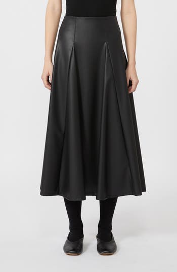 Nocera Faux Leather Godet Midi Skirt