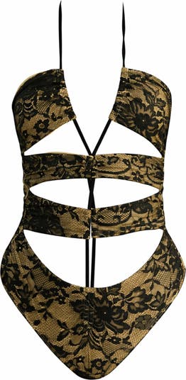 The Nocturna Monokini is your ultimate femme fatale statement. Featuring delicate black lace over a nude lining for a barely-there illusion, this design is made for those who captivate without saying a word. The adjustable criss-cross ties allow you to sculpt your curves for a custom fit that can be as daring or demure as you desire.