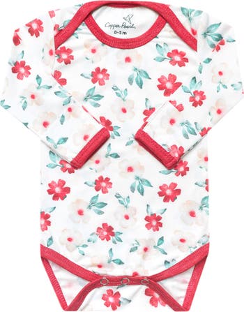 Baby will be blooming with comfort in this long-sleeve bodysuit cut from buttery-soft fabric.