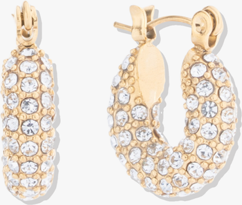 The most fun, chic hoops that are also perfect for everyday, designed with our bestie mary. Gold PVD stainless steel micro pave hoops.