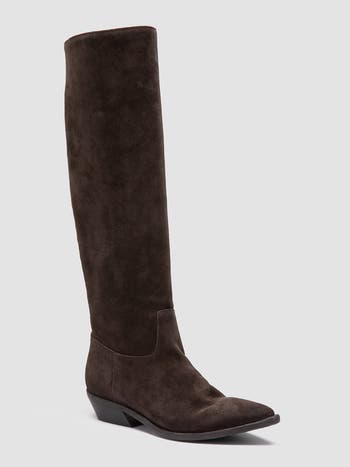 Masterfully handcrafted in Italy, this premium dark brown leather bootie beautifully balances modern structure with artisanal heritage. A sleek pointed toe and a structural block heel lend timeless, versatile elegance to the silhouette, while the supple leather construction ensures enduring comfort and authentic quality.