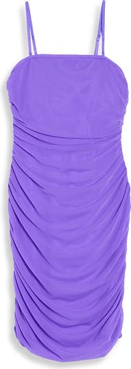 - Easy pullover style. Straight neckline. Removable, adjustable shoulder straps for the perfect fit. Ruched sides for a fun look. Double mesh fabric. Fully lined.