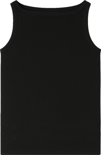 This high neck tank top is fitted throughout in a classic structured 90s silhouette. Made from supima cotton, this heavier ribbed material is both comfortable and elegant.