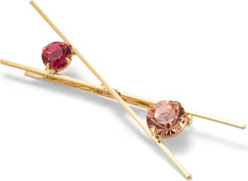 Faceted crystals sits atop this shiny metal bobby pin and give your updo delicate sparkle.