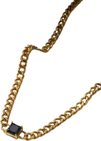 Bold meets refined. The Noir Chain Necklace features a chunky 18K gold-plated Cuban link chain anchored by a single square-cut black crystal the kind of contrast that makes people stop and ask where you got it.Whether you're stacking it or wearing it solo, this piece does the heavy lifting. Dress it up, dress it down it doesn't care. It just looks good. Details: Square-cut black zirconia centerpieceWaterproof & tarnish-resistant Hypoallergenic -1-year warranty. Arrives in Akalia signature gift packaging.