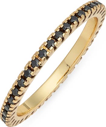 Inky cubic zirconia punctuate a dainty ring plated in high-shine 18-karat gold.