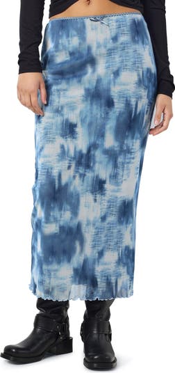 Lettuce-edge trim decorates the hem of this sustainably made maxi skirt covered in a bold print and topped with a delicate bow at the waist.