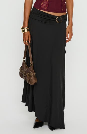 A sculptural hardware accent at the waist instantly accessorizes a flowy, trend-right maxi skirt cut from a cool cotton blend.