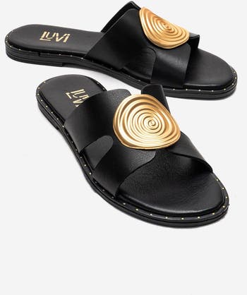 A leather slide that pairs effortless comfort with a spiral buckle accent for a standout yet refined finish