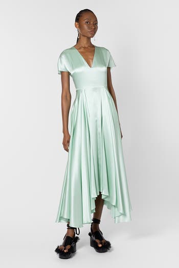 The Noma Dress is a mid length dress. A flattering fit and flare style, the fitted bodice features a cap sleeve and V neck with flowing skirts.