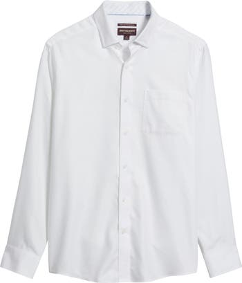 Traveling near or far for business occasions is easy in this non-iron, machine-washable dress shirt that's made from breathable cotton dobby.