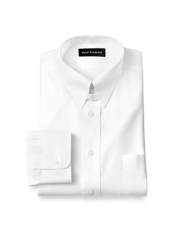Non-iron Cotton Pinpoint Solid Snap Tab Collar Dress Shirt