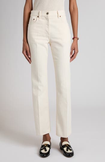 A golden VLOGO marks the back pocket of these nonstretch-denim jeans cut with a slightly flared leg and ankle crop.