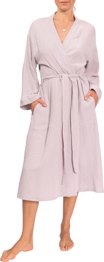 Stay in for the evening wearing this lightweight cotton gauze robe designed in a longline silhouette.