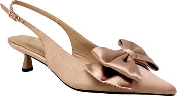 An oversized bow makes this satin pump extrafancy while a kitten heel keeps it comfortable.