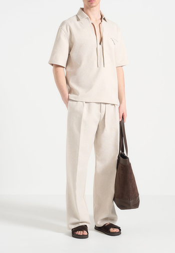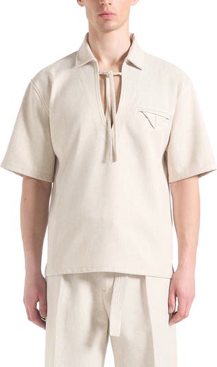 Norbert Open Collar Textured Drawstring Shirt