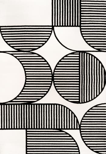 This geometric Scandi-style rug makes a statement with its minimalist arches and simple stripes. The two-tone color palette adds bold geometric patterns to your living room, dining room, office, or bedroom. Use this easy-care, family-friendly rug on the porch or deck, or in high traffic spaces like a living room, dining room or entry.