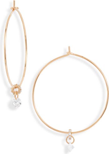 Cubic zirconia solitaires dangling from pavé loops add the perfect hint of shimmer to these slim and delicate hoop earrings.