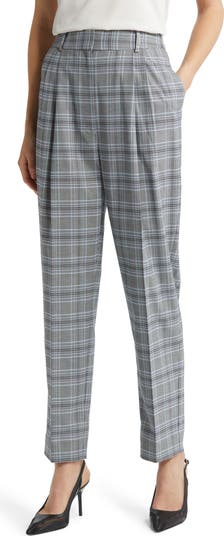 Crisp front pleats put a polished, professional spin on high-waist, straight-leg pants patterned in classic glen plaid.