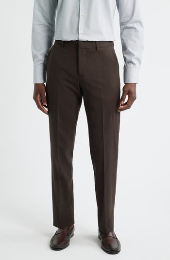 Smart and versatile, these flat-front suit pants tailored from stretch-enhanced wool sit just below the waist and taper down the legs to bring a modern finish to any formal or semiformal look. Crisp creases and a concealed closure complement the handsomely streamlined profile.