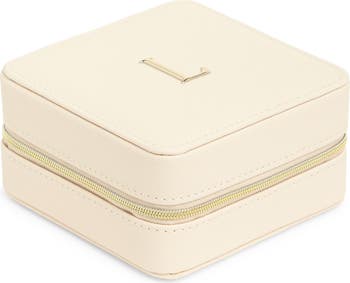 Keep rings and other jewelry secure while traveling with this zip-around case that you can personalize with an initial.