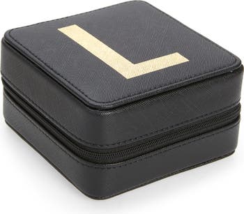 I love this little jewelry case. I has a bunch of slots for rings, an open area for bracelets, and then an upper area where you pull down a separator, and then there is more room for necklaces or whatever. Add in being able to get it with your initial on it, and it makes it a special item, great for gifts or for self. I have been given jewelry cases before, and I think the way they designed this one is brilliant. I chose the one in off-white background, with the initial in gold.