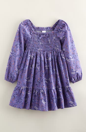 A smocked bodice accented with a dainty bow adds to the considerable charm of this cotton dress designed in a flouncy tiered silhouette enlivened with a playful print.