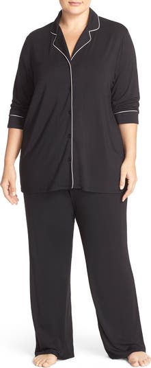 Contrast piping outlines classic menswear-inspired PJs styled with a flirty and feminine low-cut neckline. Soft, fluid pants complete the comfy set.