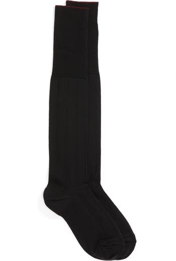 Over-the-calf socks are cut from a lightweight, soft merino-wool blend.