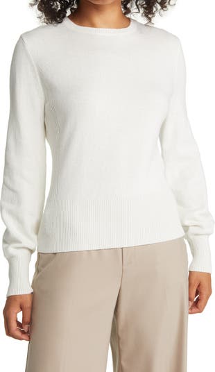 Ribbed cuffs gently puff the sleeves of this supersoft sweater to give this cozy style a sweetly framed finish.