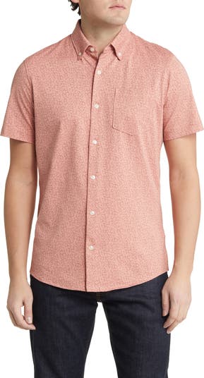 Ditsy flowers pattern a short-sleeve button-down shirt knit from comfortable moisture-wicking stretch fabric in a trim fit.