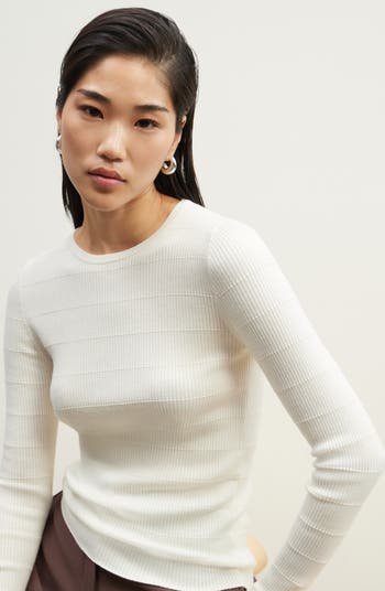 Soft allover ribbing enhances the close fit of this longline stretch-kissed sweater knit from a woolly blend.