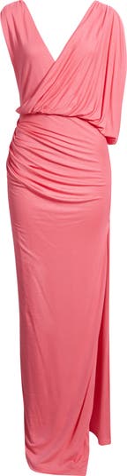 Cut from stretch-jersey fabric, this perfectly draped maxi is textured with rippled ruching and accented with a leg-baring side slit for graceful movement.