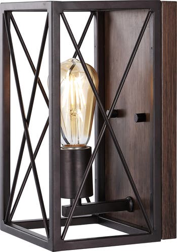 The stylish bronze finish of our X-frame lantern gives it a traditional look, but the rectangular lines are distinctly modern. The tall, Edison-style LED bulb gives off a warm glow and adds industrial flair. This wall light's clean lines are ideal for your rustic or modern front entry.