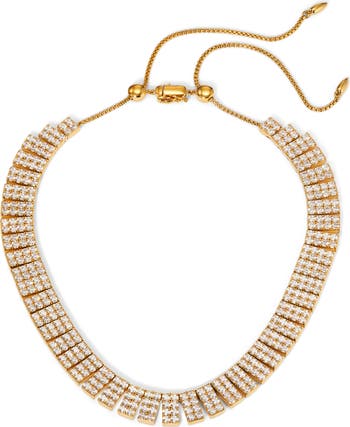 There will be no absence of shine when you step out in this pavé cubic zirconia choker plated in gleaming 18-karat gold.