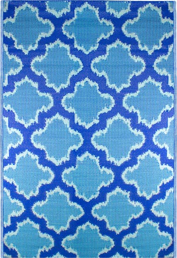 - Blue quatrefoil indoor and outdoor area throw rug