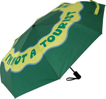 Fisura Not a Tourist Automatic Folding Compact Umbrella, Main, color, Green