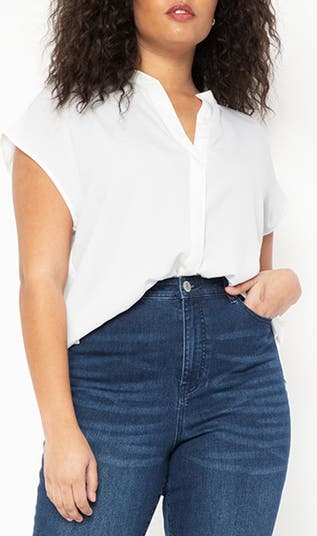 An understated blouse elevated by its modern extended sleeve design and a deep notch collar neckline; it's bound to be a core piece.