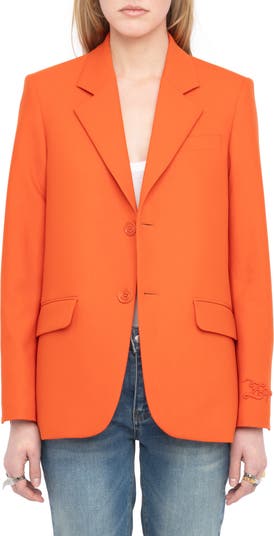 Add a pop of color with a classically tailored jacket that boasts a bit of brand love stitched onto the sleeve cuff.