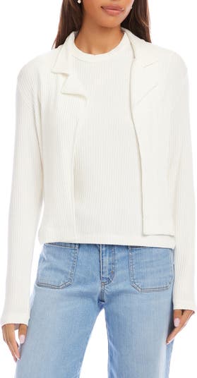 Relaxed notched lapels complement the soft, wide ribbing of this open-front jacket that's perfect for elevating your more casual looks.